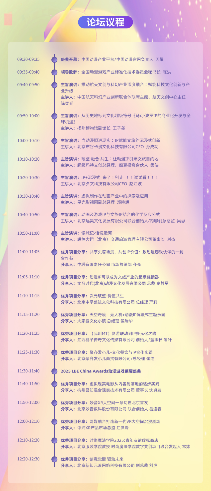 在“优秀项目推介与分享”环节中,中央电视塔、尤马时代、中孚盛达、大家据文化小镇等企业代表陆续登台,展示了多个落地性强、创新性高的动画文旅项目,从无人机主题乐园到经典IP多元化开发,从文化餐饮实践到次元破壁探索,充分体现了“动画+”在文旅场景中的广泛应用与市场活力。