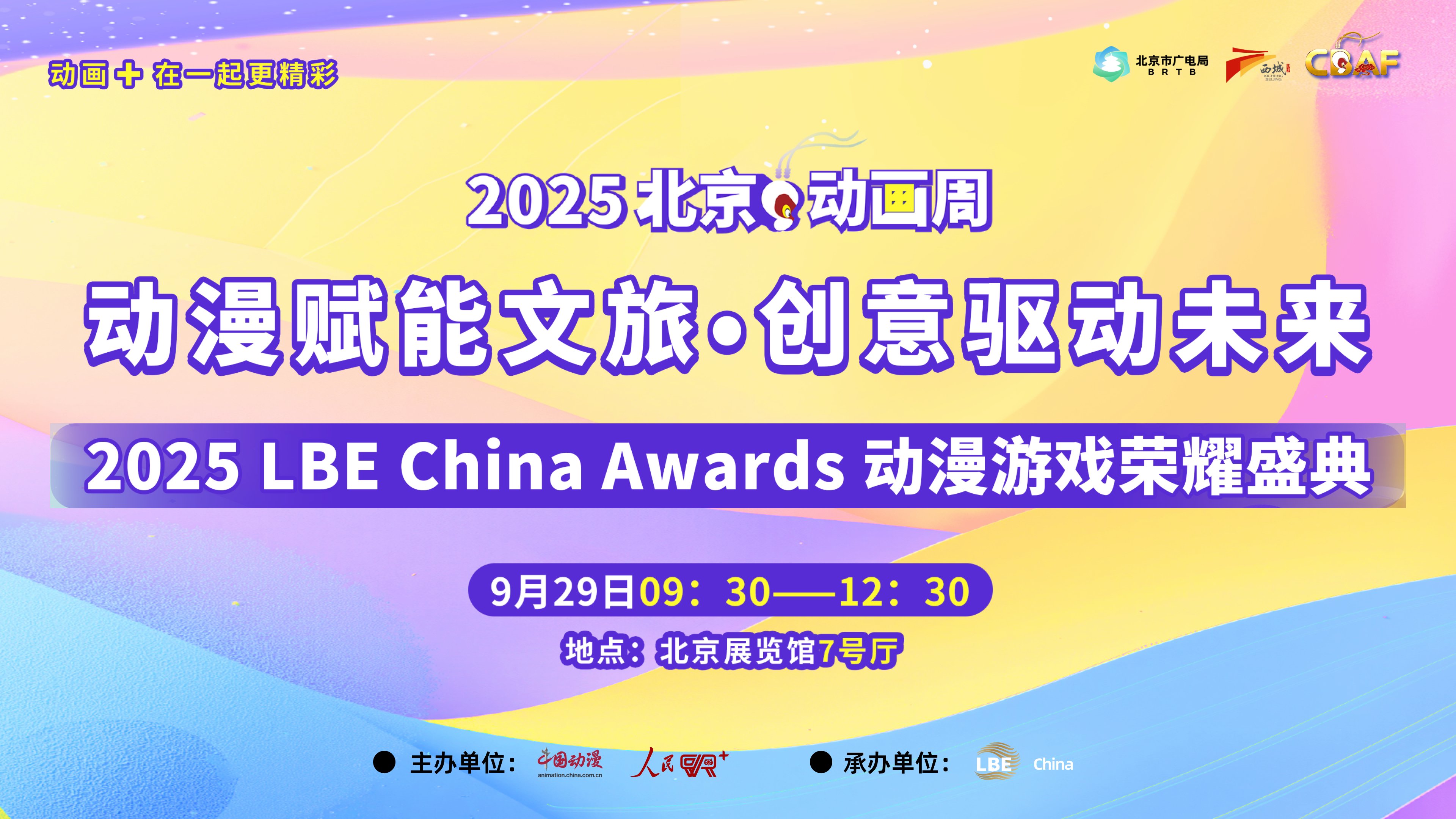 随着数字经济与实体经济的加速融合,一场由“动漫+”引领的产业变革正在蓬勃兴起。从国民级IP的潮流焕新,到结合VR大空间技术打造的沉浸式主题娱乐,动漫文化正作为核心驱动力,为文旅产业注入强大的想象力与情感价值,将天马行空的科幻幻想转化为触手可及的消费新场景。这种跨界创新的力量,正不断拓宽产业边界,激发市场潜力。在这样的大背景下,由中国动漫以及人民VR主办的2025 LBE China Awards动漫游戏荣耀盛典于2025年9月29日11:30在北京展览馆7号厅隆重举行。本届盛典以“动漫赋能文旅•创意驱动未来”为核心主旨,聚焦并表彰在动漫、VR大空间等领域取得卓越成就的创新力量。