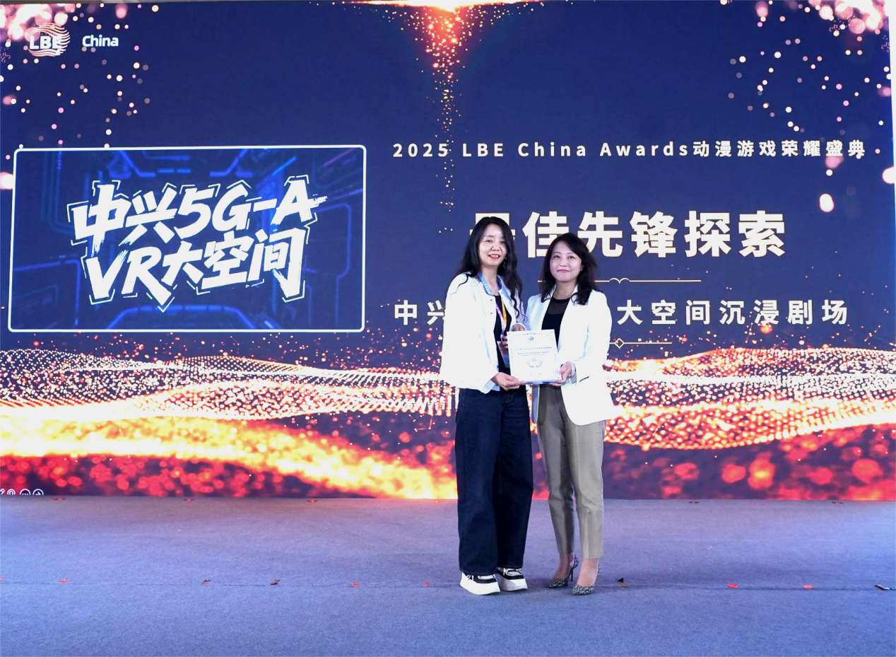 “2025 LBE China Awards年度最佳先锋探索奖”授予了由中兴通讯股份有限公司与北京兴云数科技术有限公司联合推出的“5G-A VR大空间沉浸剧场”端到端解决方案。该方案以其前瞻性的技术路线和强大的工程能力,系统性地解决了VR大空间领域长期存在的设备笨重、同场人数受限、内容兼容性差等核心痛点,为行业的规模化、高品质发展探索出一条清晰可行的未来路径。
