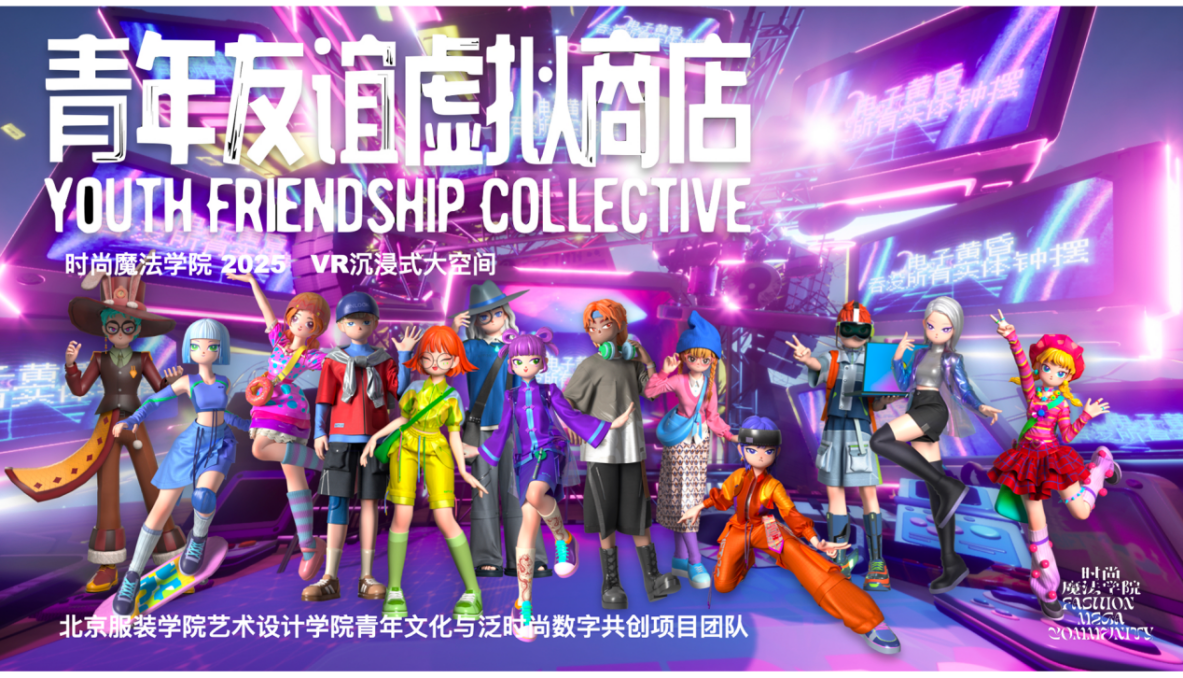 和北京北服资产管理有限公司联合打造的《时尚魔法学院2025:青年友谊虚拟商店》。该项目以其极具前瞻性的“接驳”理念和产教研用一体化的创新模式,成功地将原创虚拟IP、青年生活方式、VR沉浸体验与线下实体消费场景进行了深度链接,为“数实融合”的产业发展提供了极具价值的范本。