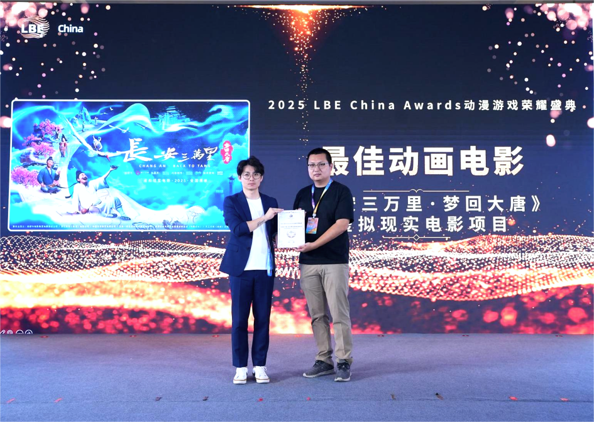 “2025 LBE China Awards年度最佳动画电影奖”授予追光动画授权、吾知科技出品与制作的《长安三万里•梦回大唐》虚拟现实电影项目。该作品成功将现象级动画电影IP与前沿虚拟现实技术深度融合,为观众带来了颠覆性的沉浸式观影体验,成为影视IP焕新与技术融合的杰出典范。