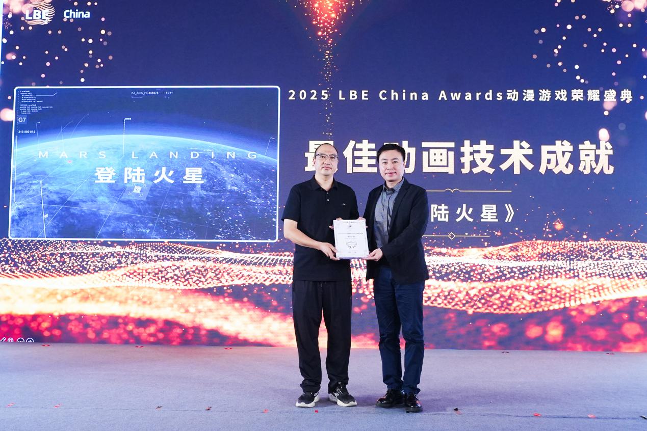 “2025 LBE China Awards年度最佳动画技术成就奖”授予了朋克编码(深圳)文化创意有限公司的科幻力作《登陆火星》。该项目凭借其开创性的8K超高清画质与尖端动画技术的综合应用,在视觉精度和渲染效果上实现了重大突破,为XR大空间体验树立了全新的行业技术标杆。